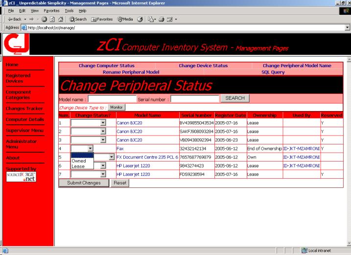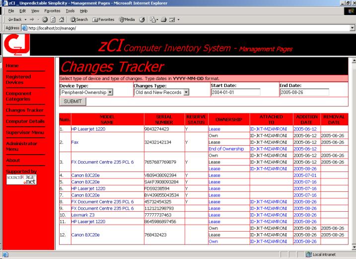 August 29, 2005: zCI version 2.1 is released. This version adds changes tracking capabilities. Computer details page of version 2.0 is moved as supervisor-level page and version 1.0c Computer Details will be the viewer level.